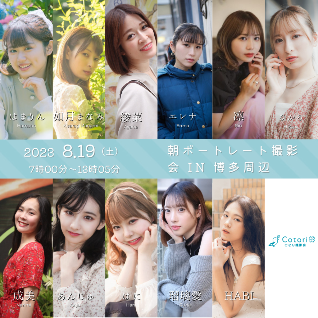 【予告】 8月19日(土)朝ポートレート撮影会 in 博多周辺 https://photo-t.cotori-pr.com/archives/events/21 <ご予約受付開始日時> 7/31(月)20時 <出演モデル…